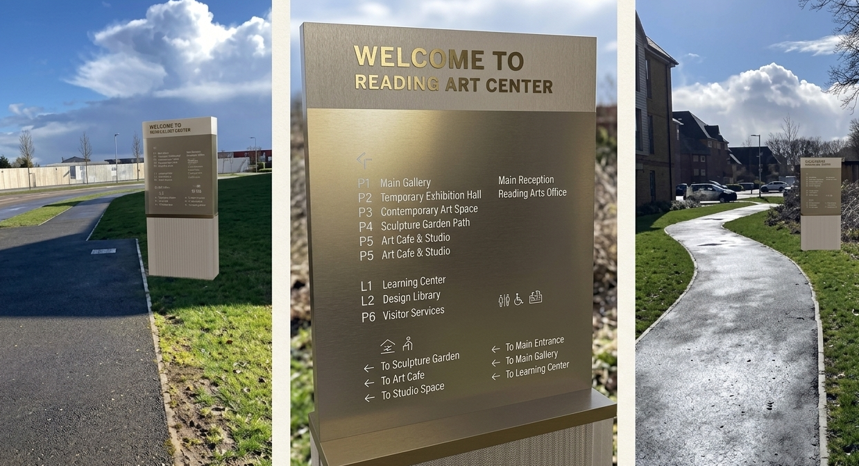 تصميم تجربة العميل في" ريدينق" تشمل أنظمة استدلال مكاني لمركز الفنون بهوية بصرية وواجهة 3D وواقع معزز.