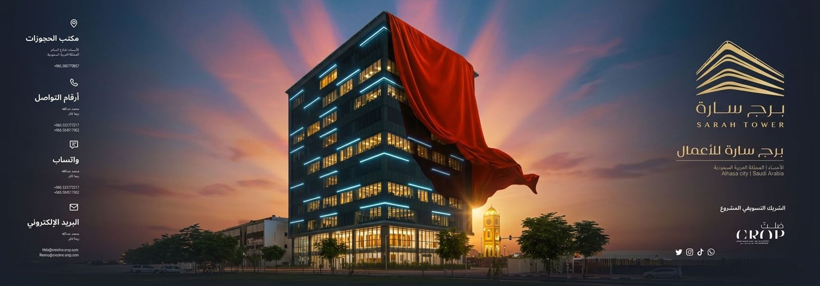 تطوير هوية "برج سارة للأعمال" إستراتيجية تسويق ،بناء موقع ، تصوير 360° لتعزيز تجربة العملاء.