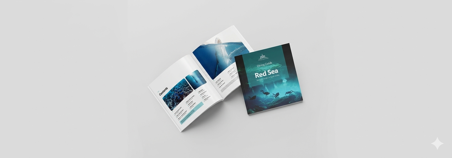 مشروع تصميم سلسلة كتب مع أبحاث وهوية تجارية يعرض وجهات بحرية بأسلوب بصري حديث.